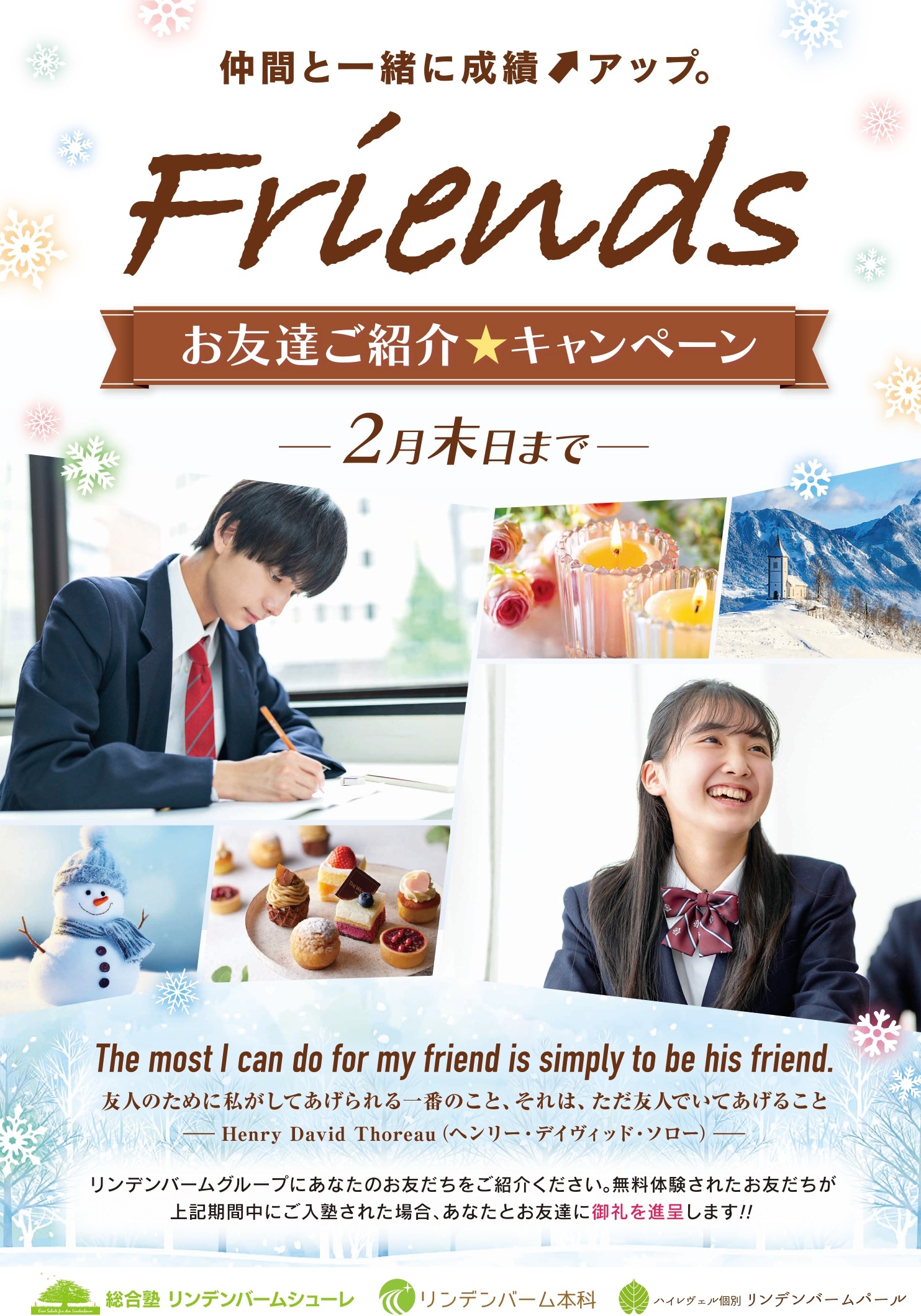 お知らせ現在、在塾生からのご紹介による体験参加キャンペーンを実施しております。