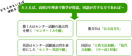 といったように、現在の学力から志望大学合格に向けて本当に必要な授業を受講していただきます。